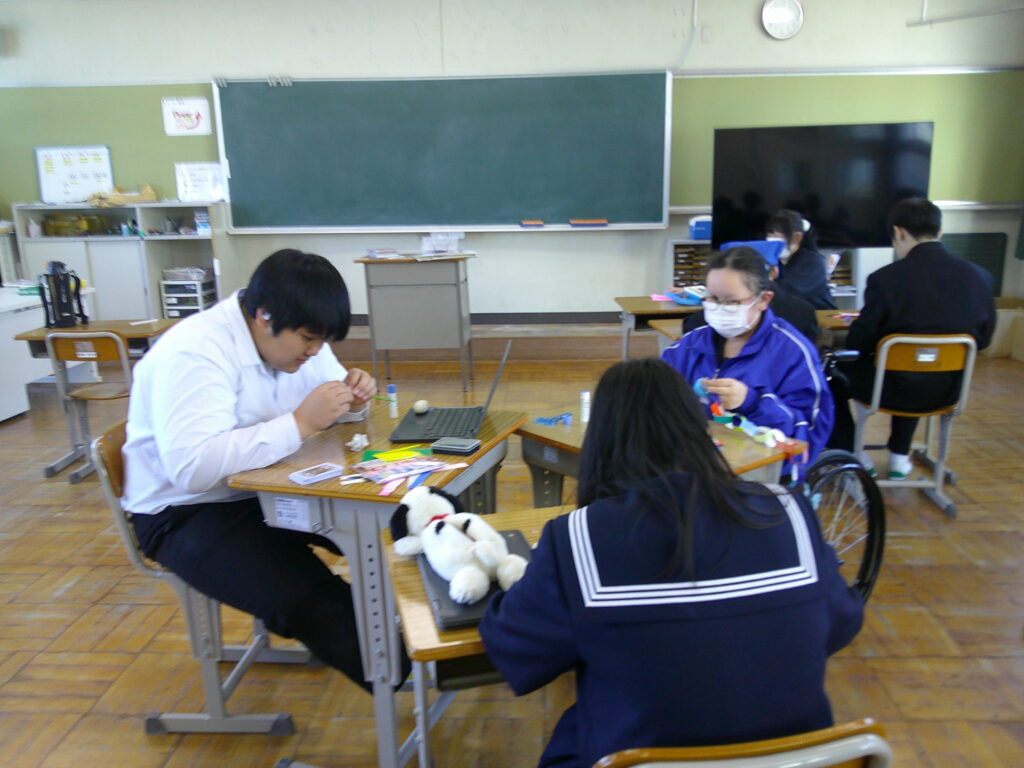 3年生に送るプレゼントを作っていました。手先の器用さをいかして、3年生が喜んでくれる顔を想像しながら難しい花を折り紙で作っていました。きっと喜んでくれると思います。