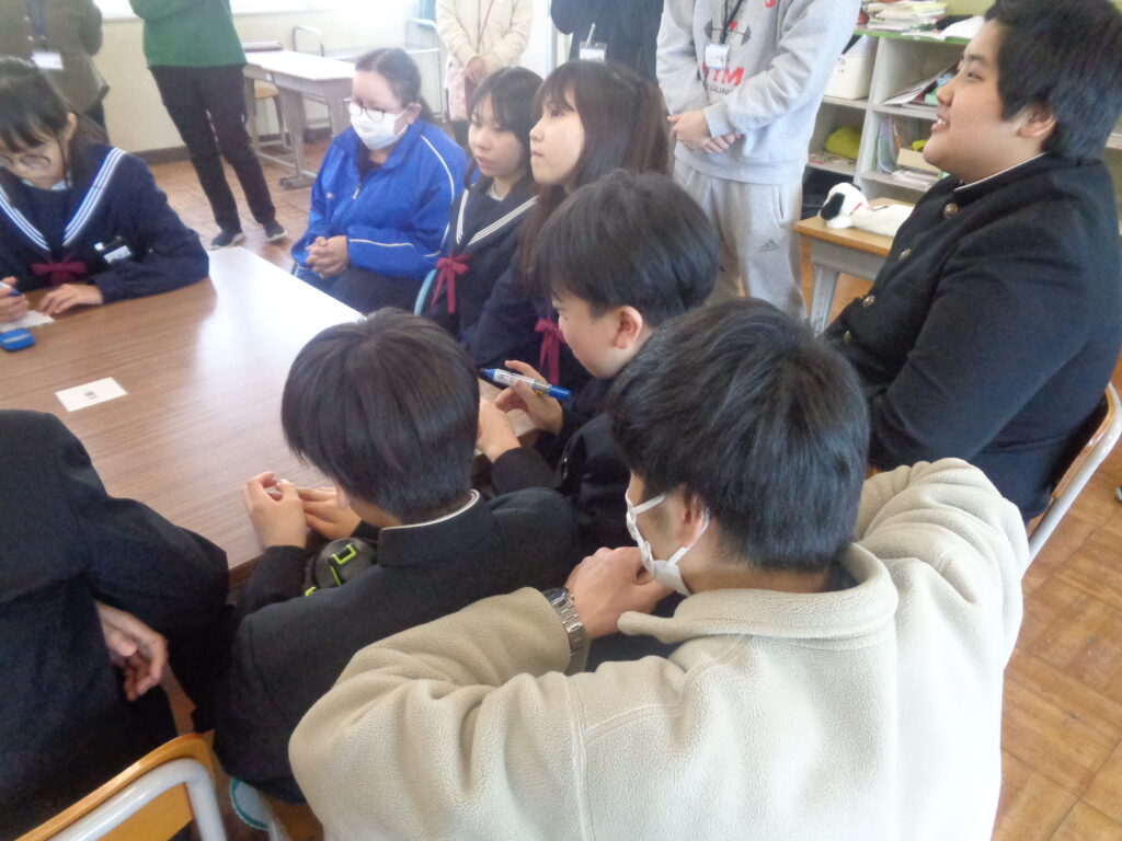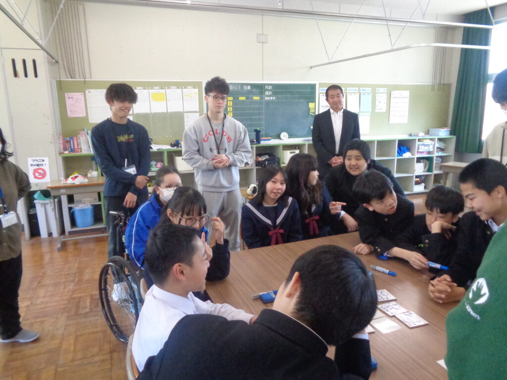 自立活動で、実際の場面を想定しながらアサーションを意識した伝え方の練習を行いました。「①自分の気持ち」「②理由」「③お願い」の3つを意識して相手に伝える活動を、チーム戦で楽しく行いました。教室は大いに盛り上がり、生徒たちは相手の気持ちを考えながら伝え方を工夫する姿が見られました。