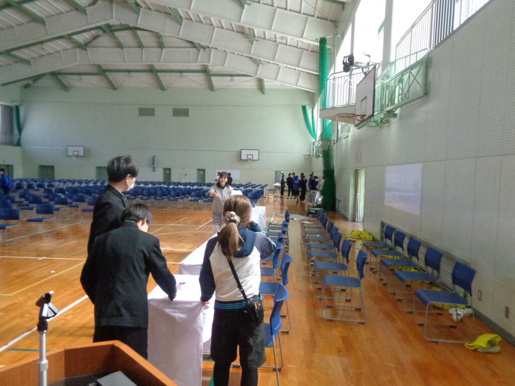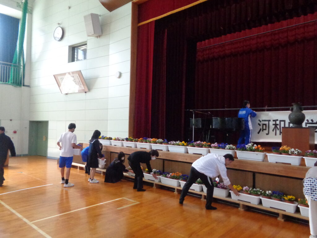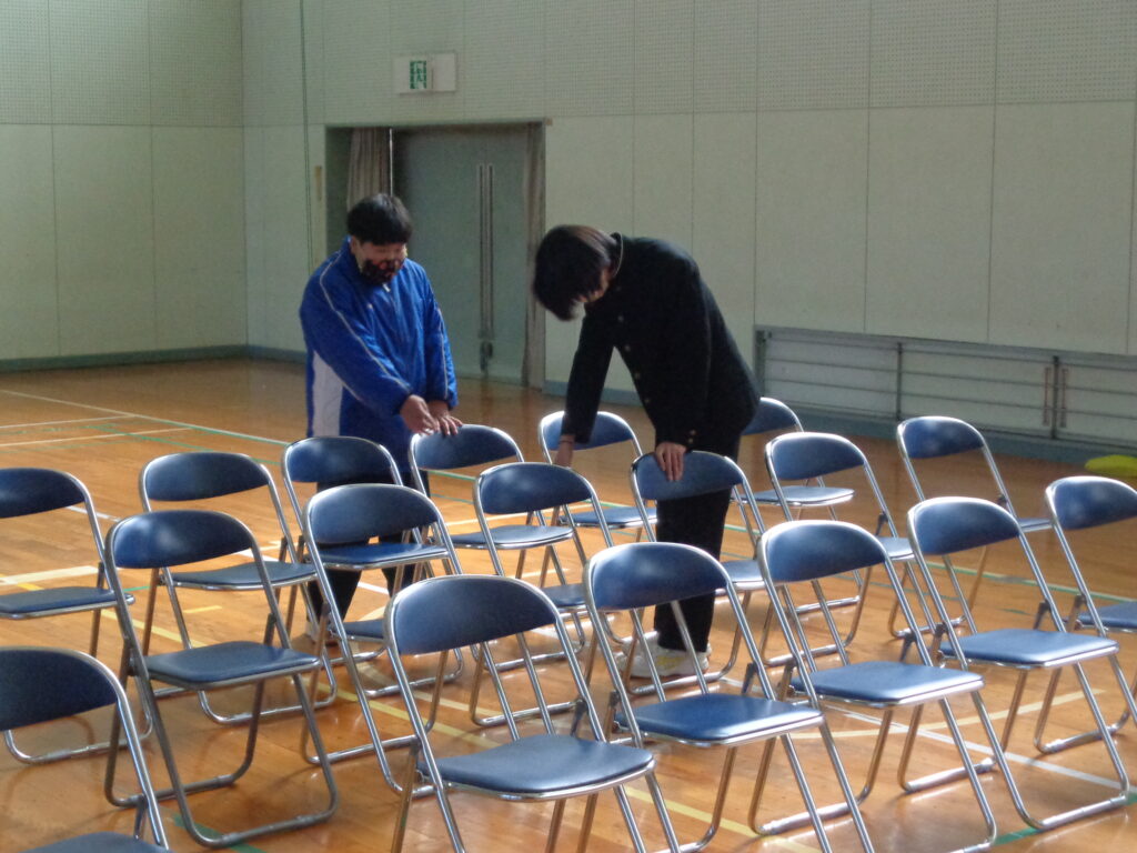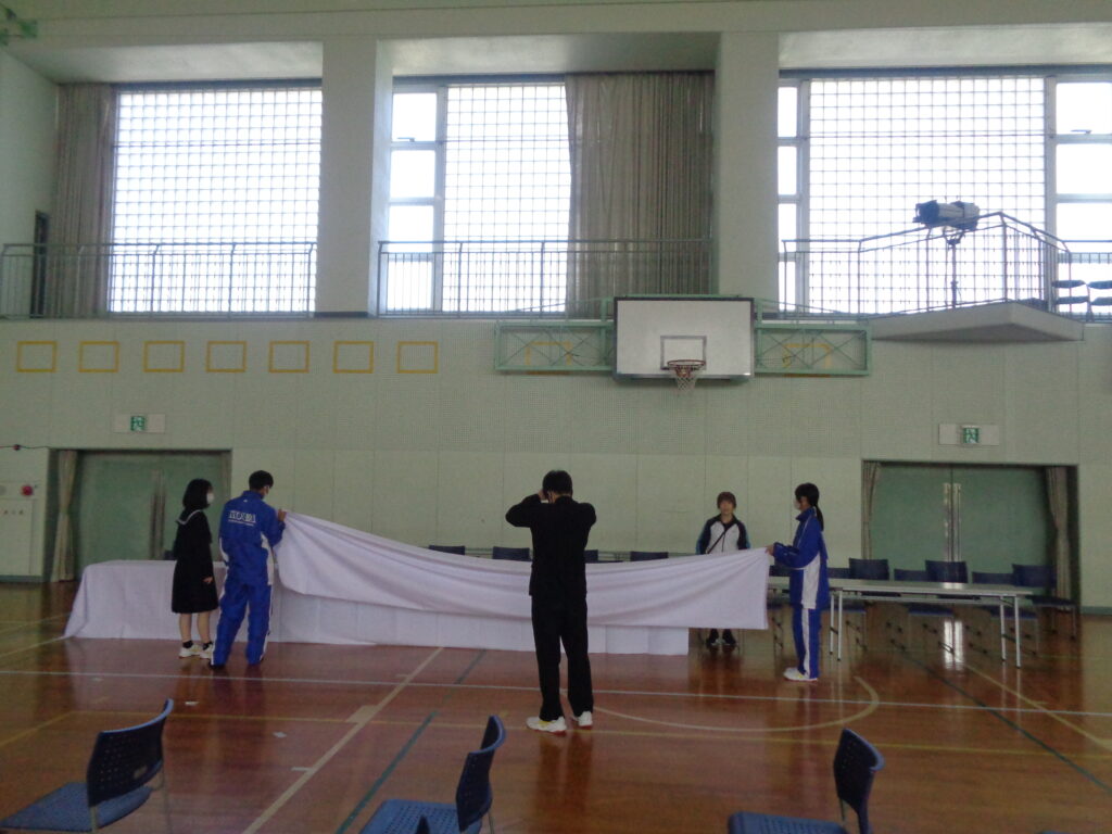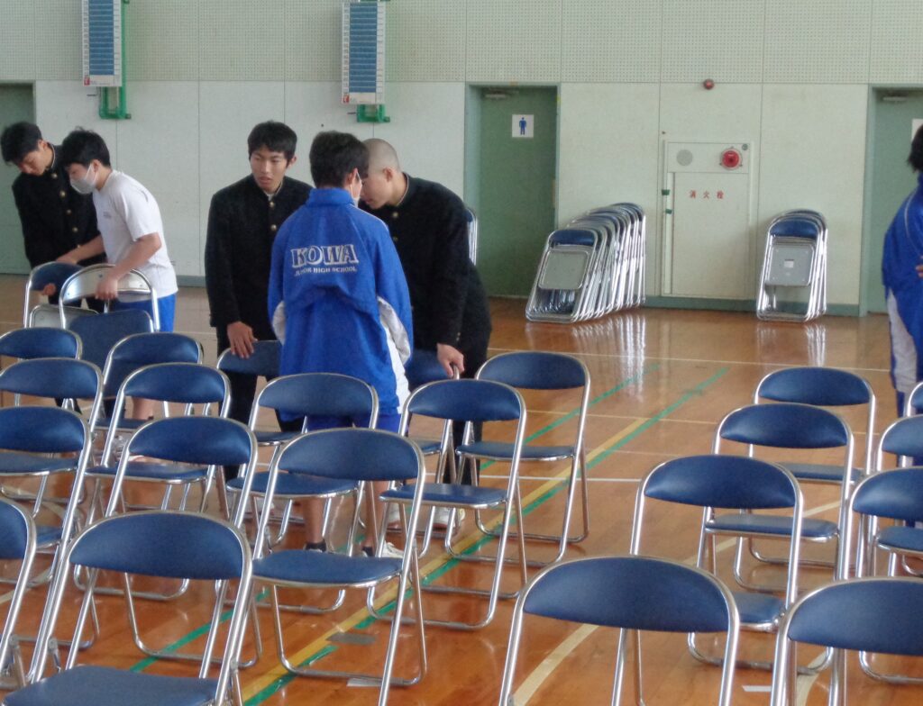 入学式・始業式に向けた式場準備を在校生が心をこめて行いました。椅子の配置や装飾、清掃など一つ一つの作業に丁寧に取り組み、「新入生を温かく迎えたい」という思いがあふれていました。入学式当日、1年生の皆さんが笑顔で登校し、新しい環境の中で希望をもって第一歩を踏み出してくれることを、在校生・教職員一同、心より願っています。