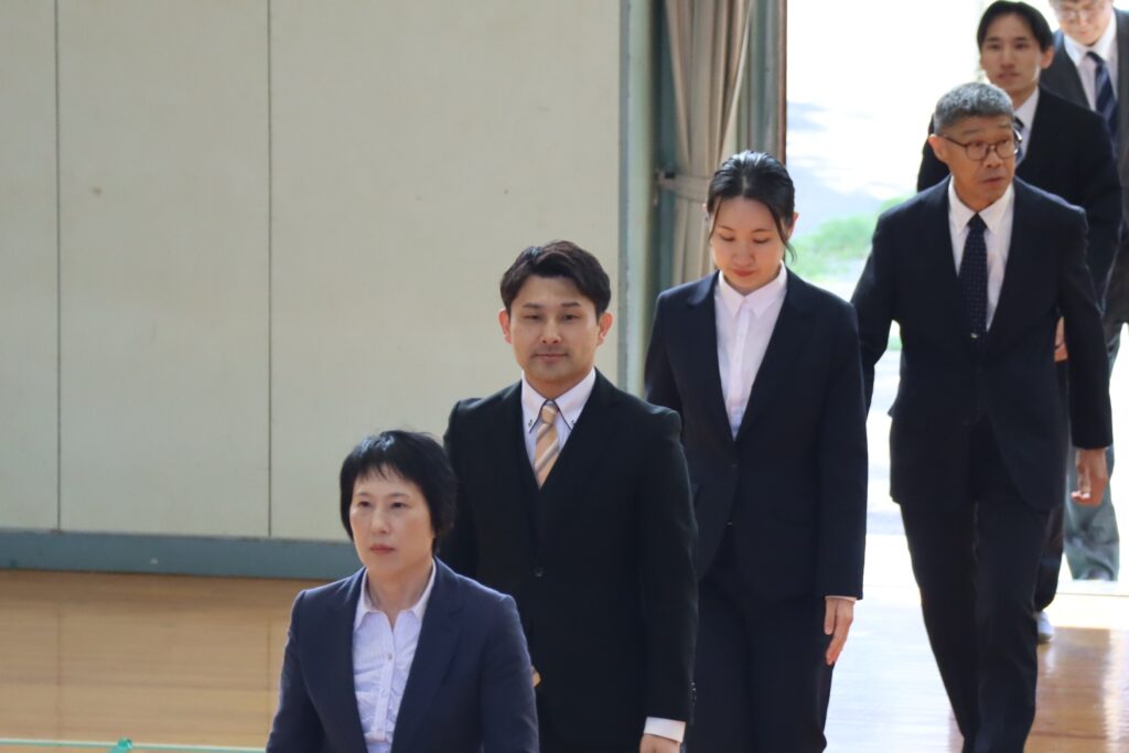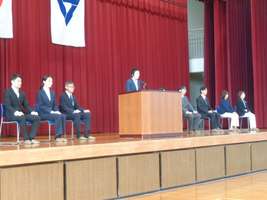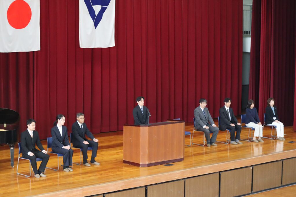 新任式を行い、新しく来ていただいた先生方をお迎えしました。式では、先生方一人一人から自己紹介があり、生徒たちはしっかりと耳を傾けて話を聞いていました。「河中生のあいさつがとてもうれしかった」などのお言葉もいただきました。これから始まる学校生活の中で、先生方との出会いを大切にしながら、ともに学び合っていくことを期待しています。