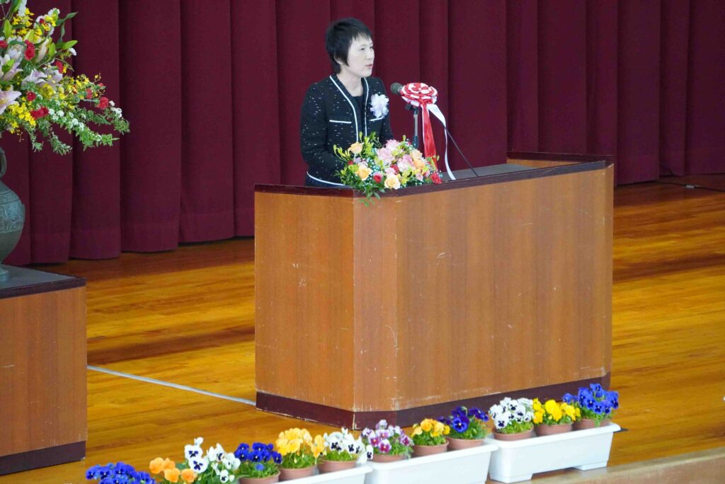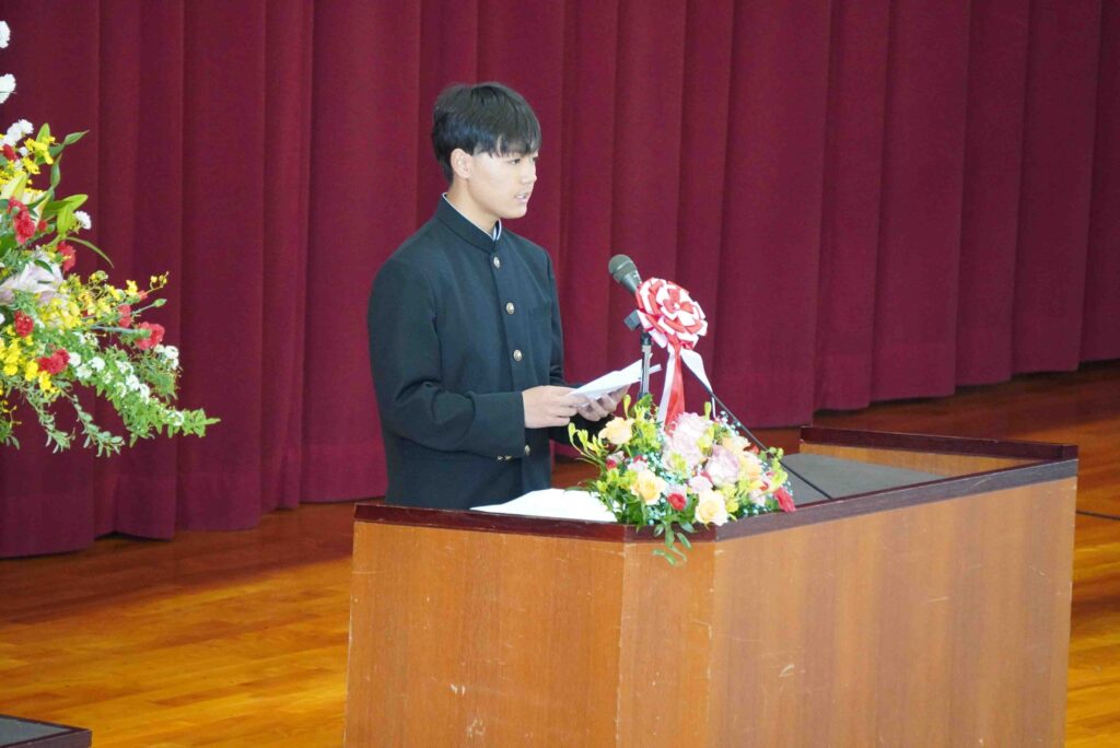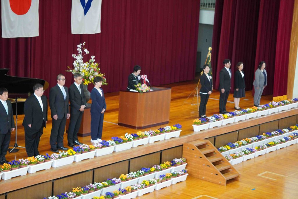 令和8年度の入学式・始業式が、晴れやかな春の空のもと挙行されました。本年度は新入生102名を迎え、全校生徒が新たな気持ちでスタートを切りました。校長式辞では、今年度のスローガン「あいと挑戦、そして創造へ」が示されました。「愛」「合い」「Eye(あい)」という四つの「あい」を大切にしながら、さまざまなことに挑戦し、まだ見ぬ自分を創り出してほしいという思いが込められています。生徒一人一人が他者と関わりながら、自らを見つめ、まだ見ぬ自分を創り出していく一年となることを期待しています。保護者の皆様、地域の皆様、本年度も本校の教育活動へのご理解とご協力をよろしくお願いいたします。