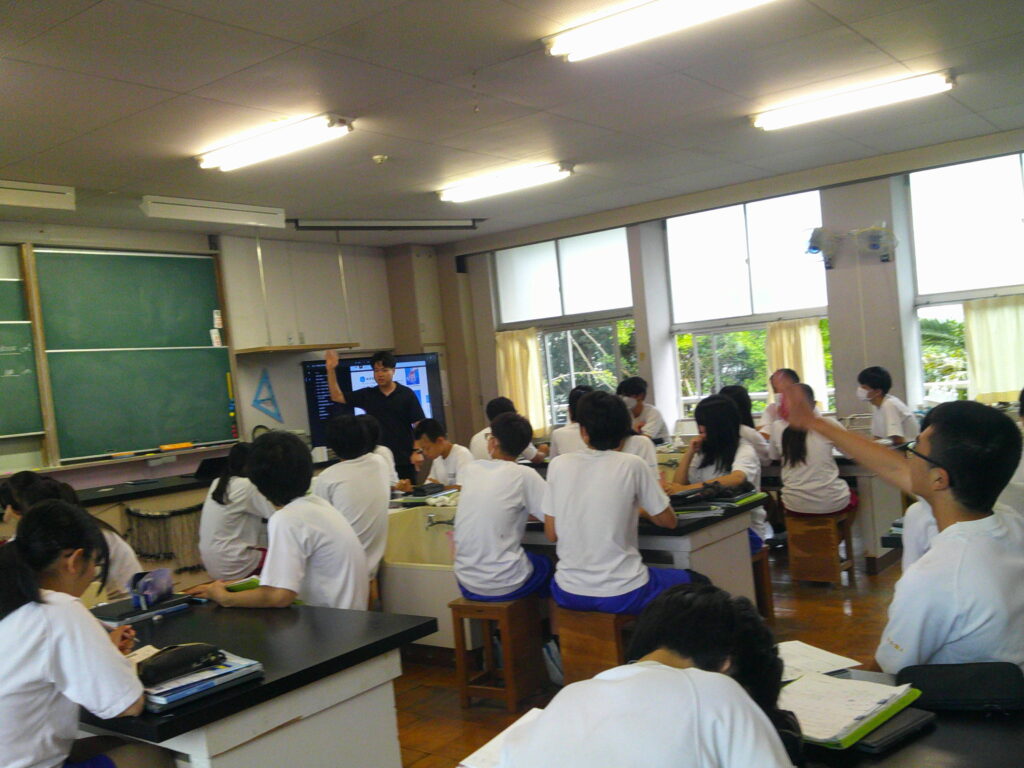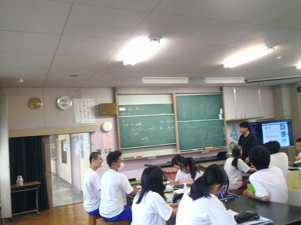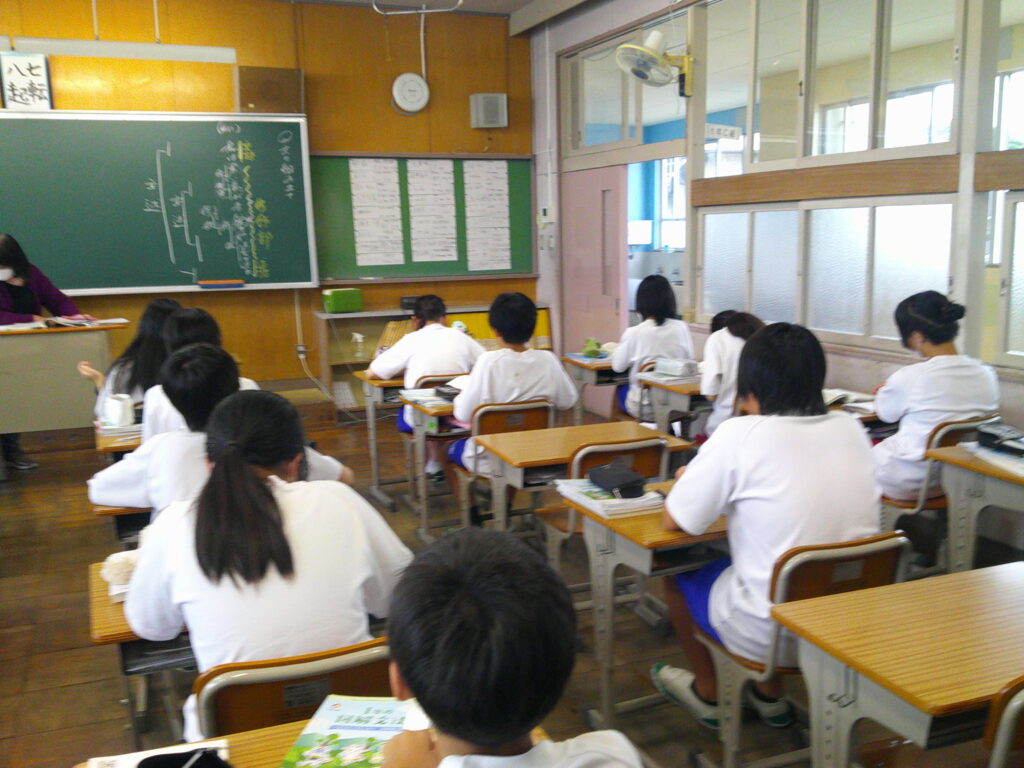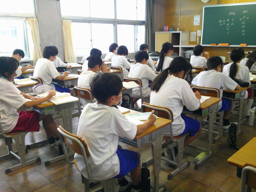 国語の授業、魯迅の『故郷』を「場面や登場人物の設定に注目して読み深めよう」という学習課題(めあて)で取り組みました。本校は、学習課題(めあて)の設定を大切にしています。黒板にしっかりめあてが書かれていました。生徒にとっては、学習の目的とゴールが明確になります。グループに分かれて、場面の様子や登場人物の変化に着目しながらワークシートにまとめ、全体で共有しながら、本時の課題(めあて)に迫りました。