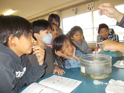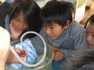 4年生は理科「ものの温度と体積」の学習です。今日は水の体積変化について予想したあと、実験で確かめました。興味をもって学習に向かう子どもたちの表情がいいですね。