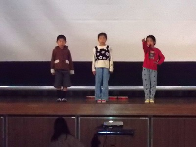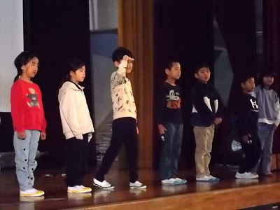 2年生は学習合評会の練習を体育館で行いました。教室と違って体育館は広いので、声の大きさや身振りなどを大きくしようと、みんなでがんばっていました。