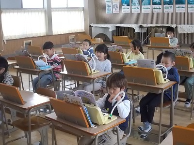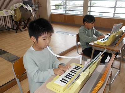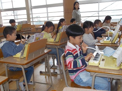 1年生は音楽で、鍵盤ハーモニカの練習をしました。「ひのまる」「どんぐりぐりぐり」「どんぐりころりん」など、いろいろな曲を演奏できるようになりました。