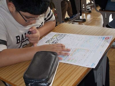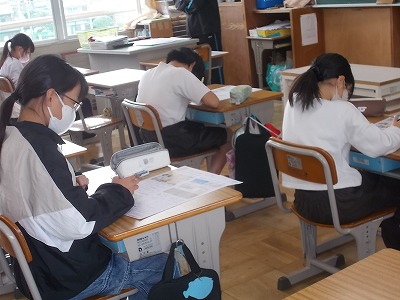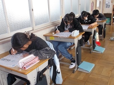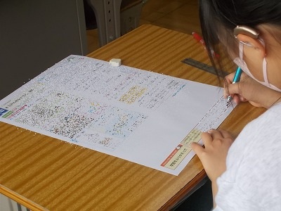 5年生も社会科のテストを受けていました。「くらしや産業を支える工業生産・自動車工業のさかんな地域」の内容です。こちらも6年生に負けないくらい、集中して取り組んでいました。解き終わってからきちんと見直しをする姿もたくさん見られました。