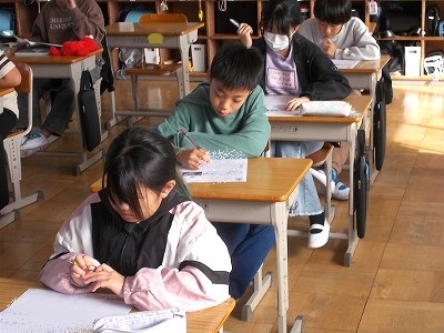 6年生は社会科「江戸の社会と文化・学問」のテストでした。落ち着いた雰囲気の中で、真剣にテストに向かっている様子が頼もしいですね。気持ちの切り替えがとても上手な学年です!