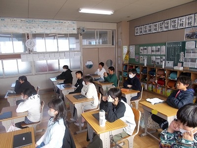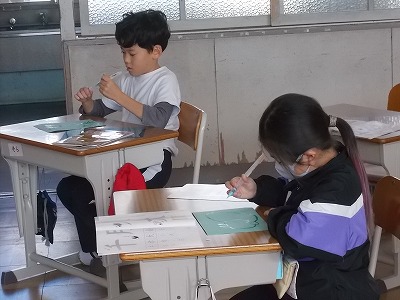 4年生は図工の作品の鑑賞をしていました。お互いの作品を見て、感想などのコメントを入力しています。工夫したところや上手なところを友達に見つけてもらえると嬉しいし、自信になりますね。