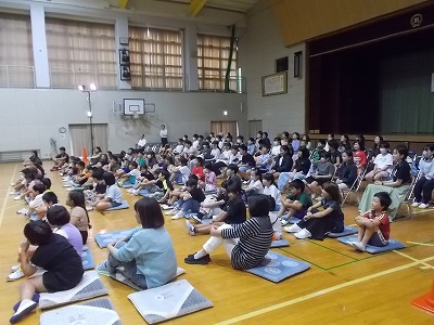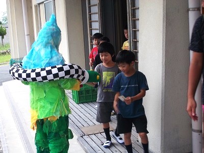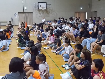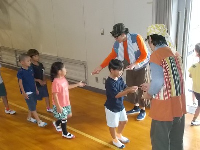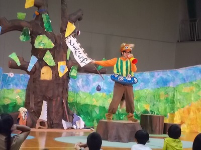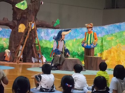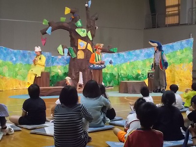 今日の午後は、野間地区青少年を育てる会と野間小学校PTAの共催で、芸術鑑賞会が開催されました。青育会の山田会長のあいさつのあと、「劇団うりんこ」さんの「ともだちや」を鑑賞しました。ユーモラスなお話の中に、考えさせられる部分もあり、1時間ほどの時間があっという間に過ぎてしまいました。児童会長さんのお礼の言葉で会が終わりました。体育館から退場する際には、出演者から子どもたち一人一人にカードを手渡していただき、ヘビさんにはお見送りもしていただきました。