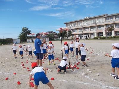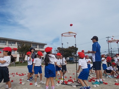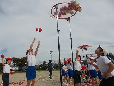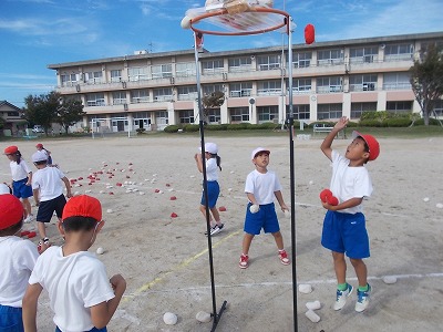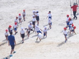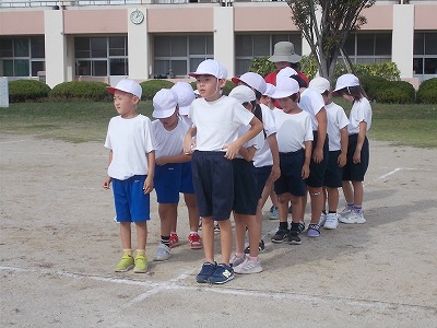 1・2年生は運動会の種目練習です。入場前の整列も、ビシッとできるようになってきました。