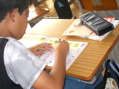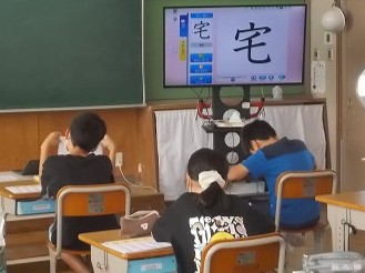 6年生は国語の授業の最初に、新出漢字の学習をしました。今日は「宅」という字でした。使い方や書き順をみんなで確認し、ドリルに練習しました。