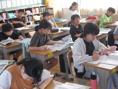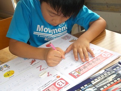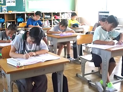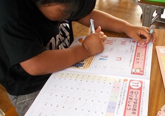 3年生はローマ字の学習をしました。今日は「ga,gi,gu,ge,go」などを練習しました。自分のペースで丁寧に書き込んでいます。