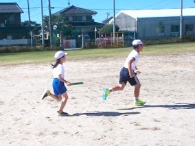 4年生は体育でリレーの練習をしました。ペアで相談しながら、バトンパスの練習をしています。距離やタイミングをいろいろ調整して、より速いスピードで受け渡しできるようになりました。