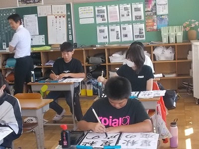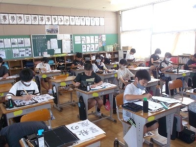 6年生は書写で「秋の星座」という課題に取り組んでいます。先生の説明が終わって練習が始まると、静かな雰囲気の中で書き始めました。気持ちの切り替えが素晴らしいですね。