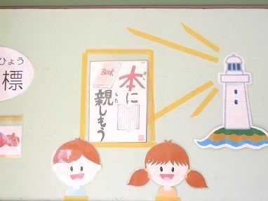 昇降口には、毎月、その月の目標が掲示されています。10月は「本に親しもう」です。野間小の図書室には、新しい本や各学年におすすめの本も展示されています。ぜひ「読書の秋」も満喫し手欲しいと思います。