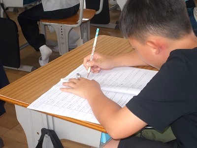 6年生の算数は、プリントを使って学習しました。「表からきまりを見つけて問題を解こう」という今日のめあてにしたがって、どの子もきまりを見つけようと一生懸命考えていました。