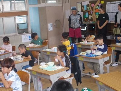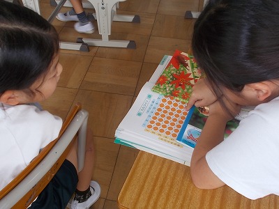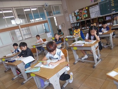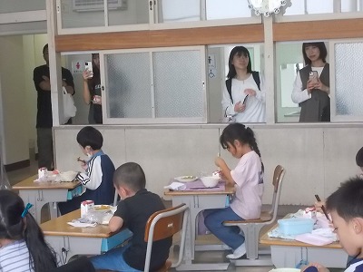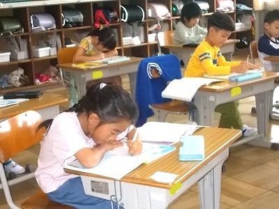 1年生は国語で「くじらぐも」の学習をしています。今日は学習発表会に向けて、役割分担をしました。どこの部分を誰が読むといいのか、みんなで相談しながら決めました。決まった子の名前を、教科書にしっかりメモしていますね。また1年生保護者対象で「給食試食会」が開催されました。給食の時間には1年生の会食の様子を見に来ていただきました。ちょっぴり緊張して、いつもよりもだいぶ静かな会食でした。参加してくださった保護者の皆さま、ありがとうございました。