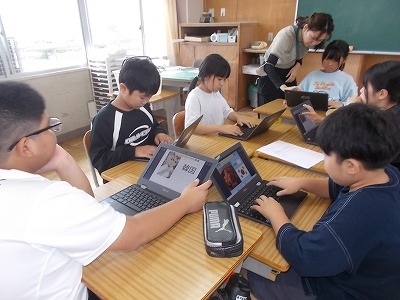 6年生は学習発表会に向け、歴史の調べ学習をしています。「縄文・弥生時代」「鎌倉・室町時代」のように、分担を決めて取り組んでいます。