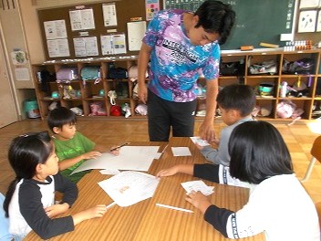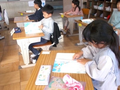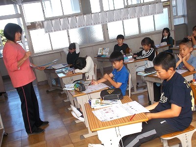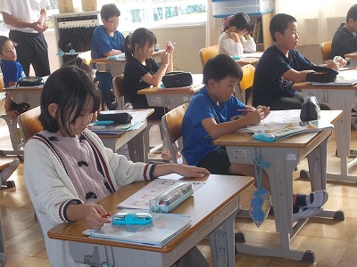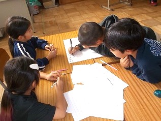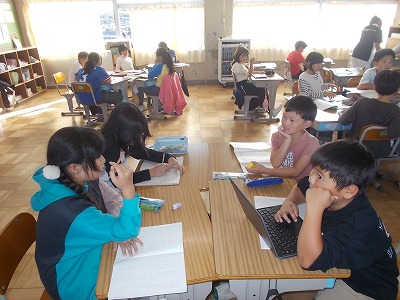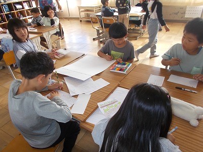 2年生はお話を聞きに行った公民館、郵便局などについて、それぞれの班でまとめをしていました。聞いたお話の内容を思い出しながら、協力してまとめています。写真や絵も使ってまとめていくようです。