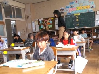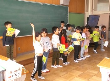 1年生は国語「くじらぐも」の学習をしています。学習発表会で発表するために、自分の担当する部分をしっかりと覚えました。後半は、ステージの並び方を確認したり、実際に練習したりしました。元気が溢れている1年生でした。