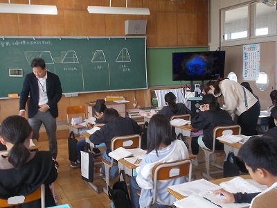 5年生は算数で、台形の面積の求め方を考えました。図に書き込んで考える子、図を切り貼りして考える子など、今までに習った図形の面積の求め方を生かしながら考えています。既習事項を生かせる力はとても大切です。