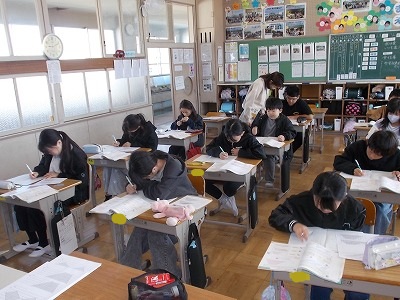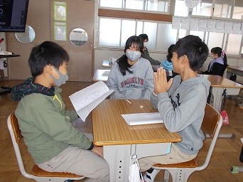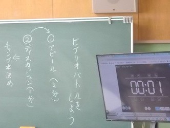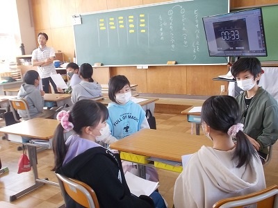 6年生は国語で「ビブリオバトル」を行いました。先日の授業で紹介したい本を決め、あらすじや特徴などをまとめています。今日は各自が2分で発表し、1分間のディスカッションをしたあと、チャンピオンを決めます。どの子も制限時間をうまく使ってPRしています。