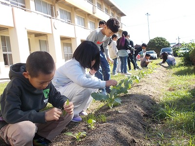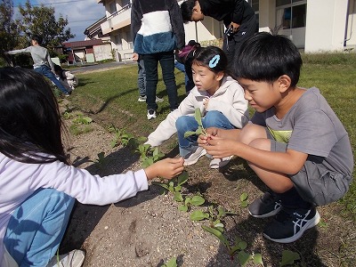 2年生は生活科です。植えた苗がだいぶ大きくなってきました。赤かぶも、プクッと膨らんできました。これからどんどん大きくなっていきますね。