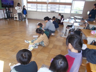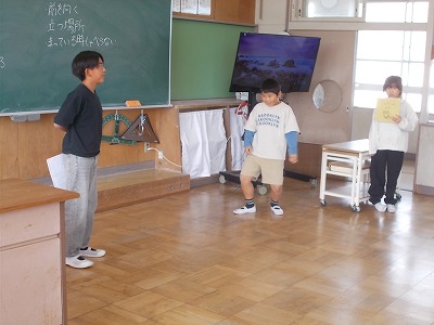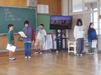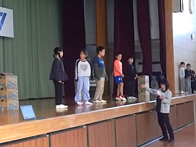4年生は学習発表会の練習をしていました。ステージへの出入りや身振りなど、動きをつけながらセリフを言ってみました。