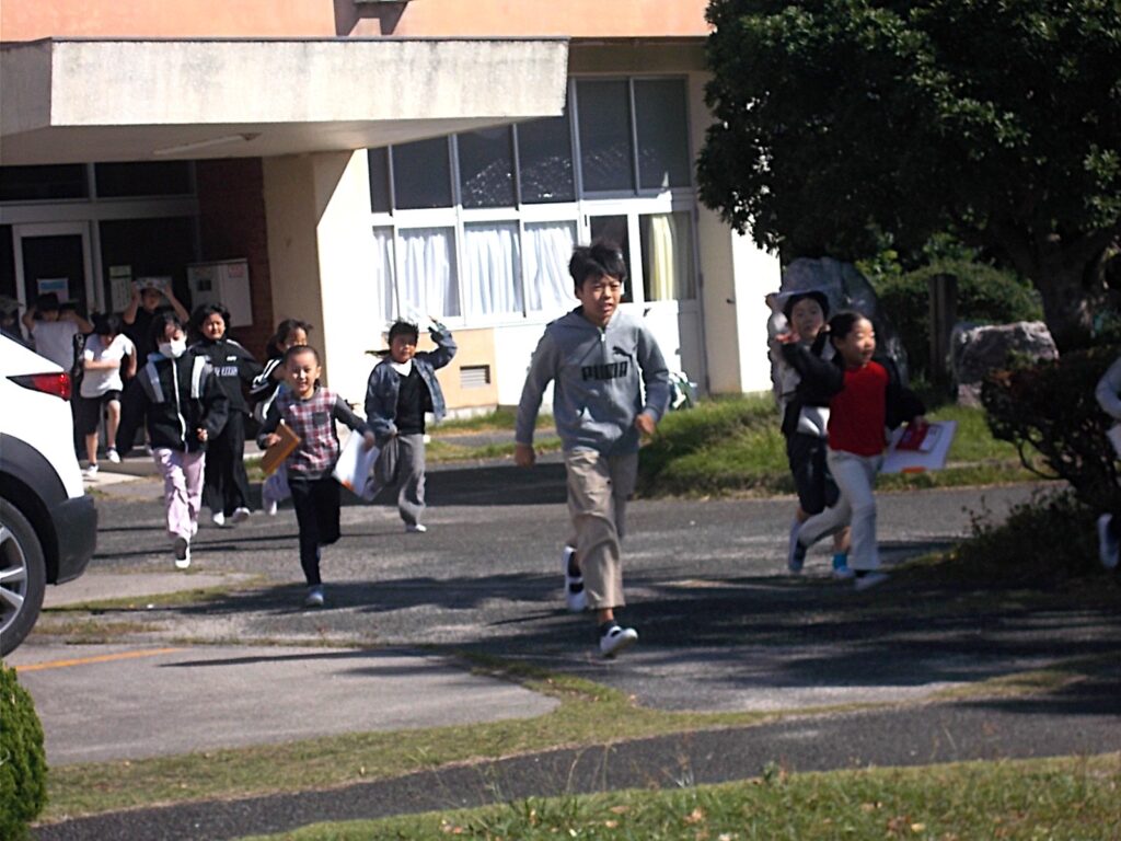 大放課に地震の避難訓練を行いました。震度5以上の地震の発生を想定し、今回は子どもたちへの事前予告は無しでの訓練です。教室、廊下、更衣室、階段、運動場など、様々な場所にいた子どもたち。緊急地震速報の音を聞き、すぐに身の安全を確保し、放送の指示で運動場に避難しました。「お・は・し・も」をしっかり守って素早く行動できたことは、本当に素晴らしかったです。また、今回は行方不明の子がいるという想定で、職員が探しに行く訓練も同時に行いました。今後も、かけがえのない命を守るために、職員・児童が力を合わせ、しっかりと取り組んでいきたいと思います。