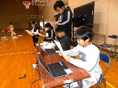 児童会役員さんは、大放課に学習発表会の司会進行の練習をしました。自分の学年の発表もあるため、「〇年生の発表の時は**さんと**さん」と言うように役割を分担しています。自分の学年の発表の前後は忙しくなりそうです。頑張ってください。今日の体育館は13℃。じっとしていると寒いくらいです。子どもたちも、保護者の皆さまも、当日の天候や気温に合わせて温かくしてお越しください。