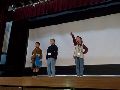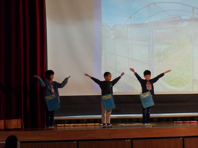 学習発表会2年生の様子です。「びっくり!はっけん!野間たんけんたい」(生活科「まちたんけん」国語科「どうぶつ園のじゅうい」、校外学習で学んだこと)を発表しました。