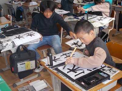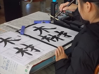 4年生は書写で、「木材」を練習しています。先生と一画ずつ確認しながら練習し、苦手な部分を何度も練習しました。