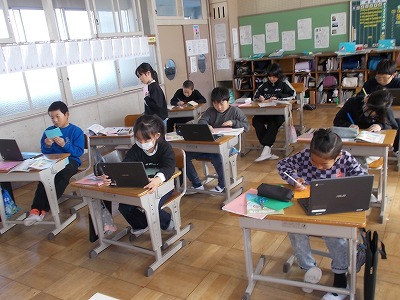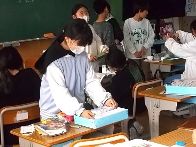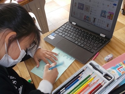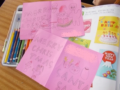 3年生は英語の授業です。前回の授業で始めたカードづくりの続きに取り組みました。この時期らしくクリスマスカードを作ったり、「ありがとう」の気持ちを伝えるカードを作ったりしていました。この時間中に完成できるかな?