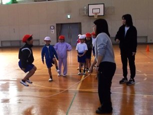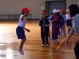 1年生は体育で、大縄跳びに挑戦しました。縄のタイミングに合わせて、上手にジャンプすることができました。