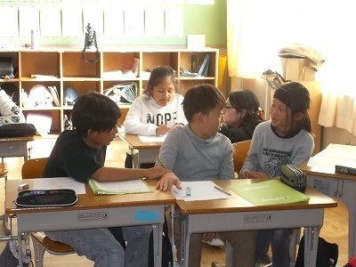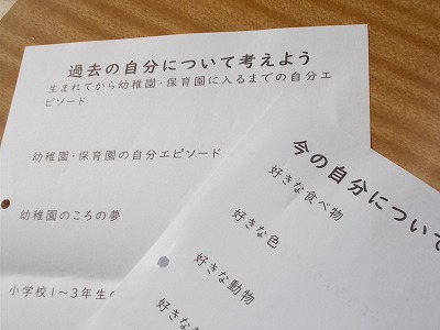 4年生は総合的な学習の時間に、「過去の自分」と「今の自分」について考えていました。保育園に入る前、保育園の頃、小学校低学年の頃、今の自分、というように、いろいろな時期の自分についてプリントの質問に答える形で進めていきました。