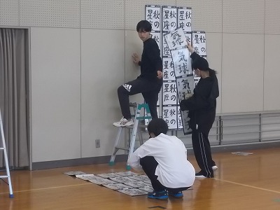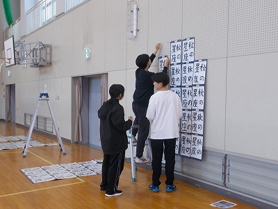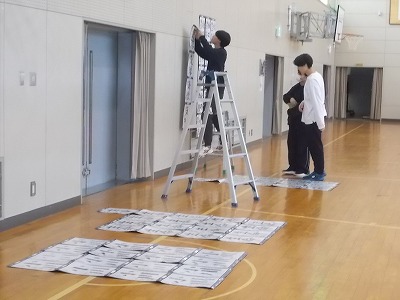 日曜日の公民館まつりに向けて、子どもたちの作品の展示準備を少しずつ進めています。今日は日本福祉大の学生ボランティアさんも、力を貸してくれました。