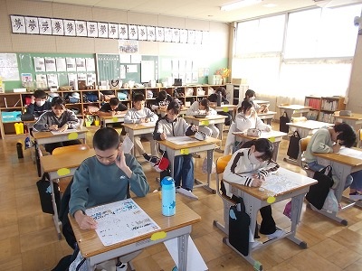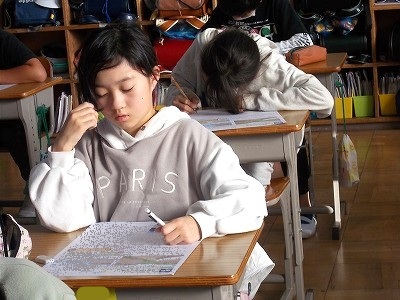 6年生は理科「土地のつくり」のテストでした。6時間目なので、この時間が終われば下校です。最後のパワーを振り絞って、最後まであきらめずに取り組んでくださいね。