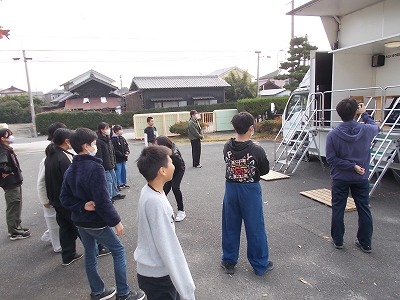 今日は3年生と6年生が、起震車「なまず号」の体験をしました。東海・東南海地震が連動して発生した場合を想定した揺れ方を体験させていただきました。12/8には青森県東方沖で震度6強の地震が発生し、その後「北海道・三陸沖後発地震注意情報」も発令されました。改めて、地震発生時の対応について、子どもたちとともに再度確認しておきたいものです。