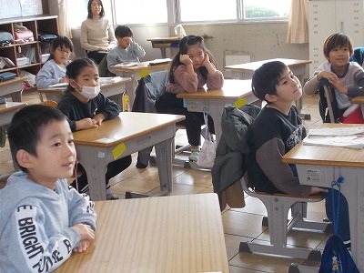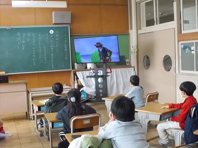 1年生の国語は、「むかしばなしをよもう」の学習に入ります。今日は学習の始めということで、みんなで昔話の動画を観ました。次の時間からの学習が楽しみになりますね。