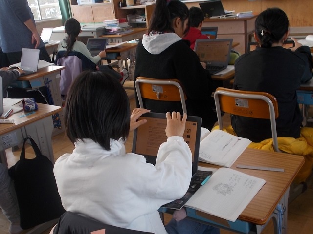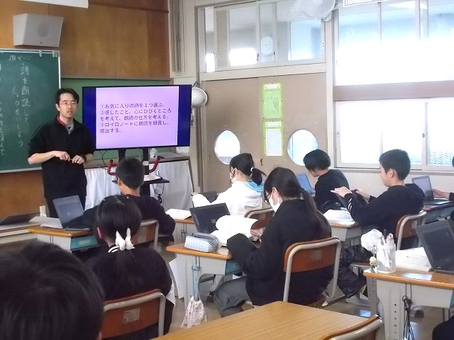 6年生の国語も詩の学習「詩を朗読してしょうかいしよう」でした。教科書の3つの詩の中から1つを選び、自分が感じたことや心に響いたことを考えて朗読し、録音しました。