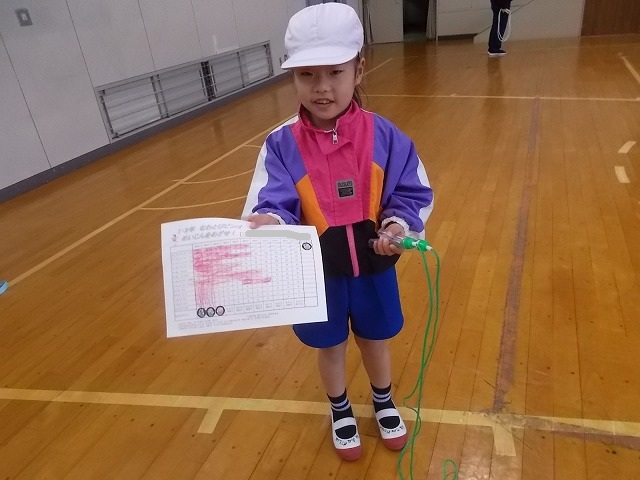 1年生は体育で縄跳びの練習をしていました。縄跳びカードに沿って、跳べる回数や跳び方に挑戦しています。縄跳びが得意な子も苦手な子も、自分の力に合わせて一生懸命練習していました。