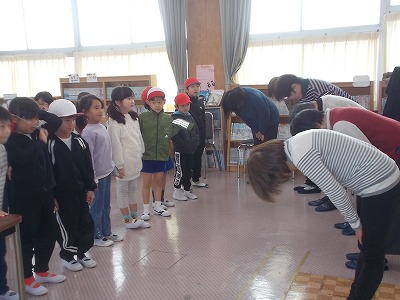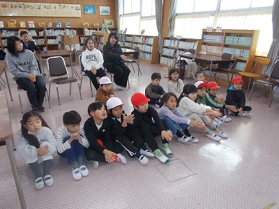 今日の大放課に、1月のお話会が開催されました。新年1回目のお話しは「おもち1つでだんまりくらべでした。お話の後にはお餅つきの手遊びも行いました。海の子文庫の皆さま、楽しい時間をありがとうございました。