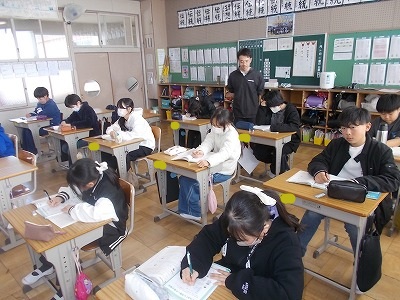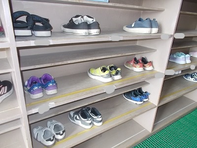 昇降口の靴箱です。靴がきちんとそろえられていて、気持ちのよい学年が3つありました。素晴らしいですね。自分の学年はありましたか・・・?