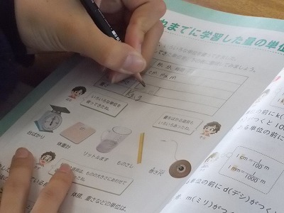 6年生は算数で、「これまでに学習した量の単位」の学習をしました。時間を表す単位、長さを表す単位、重さを表す単位、面積を表す単位など、いろいろな単位を振り返っていました。