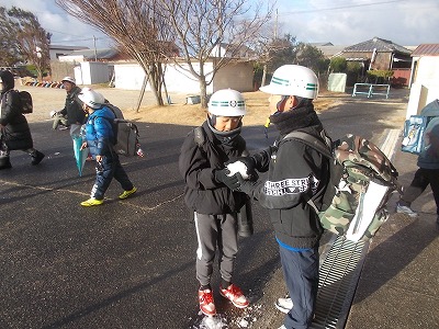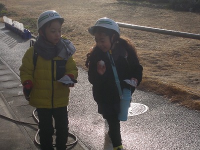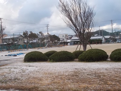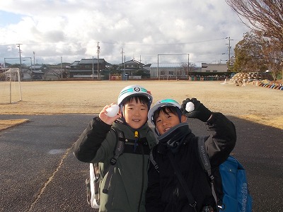 今日はうっすら雪化粧の朝でした。子どもたちはわずかに残っている雪を集めて、大はしゃぎしていました。