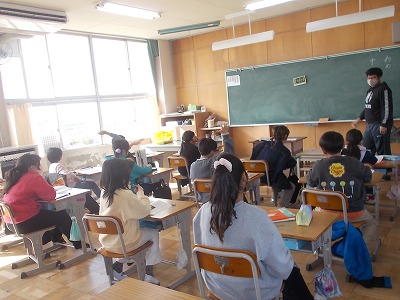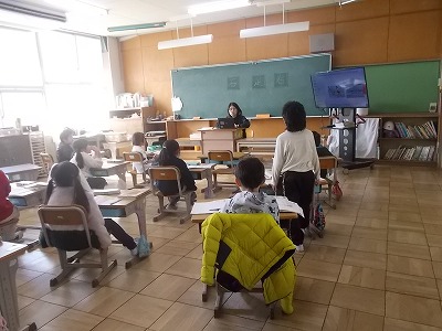 4年生の国語は説明文「風船でうちゅうへ」に入りました。説明文は「初め」「中」「終わり」に分かれていることなど、これまでに学習したことを振り返ったあと、お話を読んでいきました。
