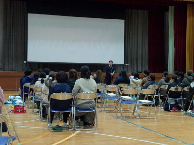 1月22日(木)、6年生が野間中学校で中学校入学に向けて話を聞いたり、部活動を見学したりしました。中学校進学が目前に迫ってきたのを実感していました。