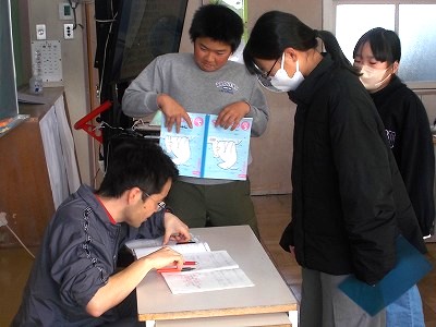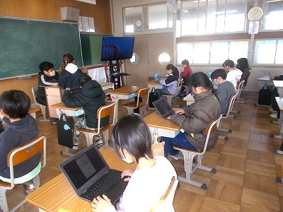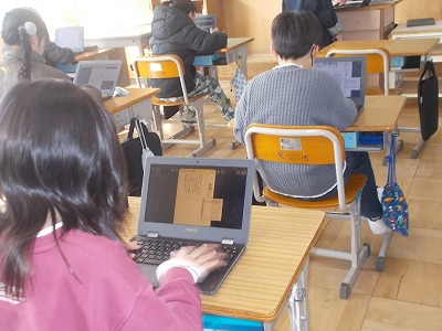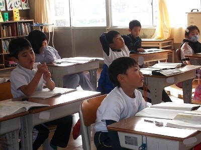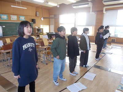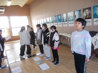 5年生は音楽の授業でした。音楽室の後ろに2列で向かい合って並び、歌の練習をしていました。声を聴き合いながら、美しい歌声で歌っていました。卒業式でも、美しい歌声を聴かせてくださいね。
