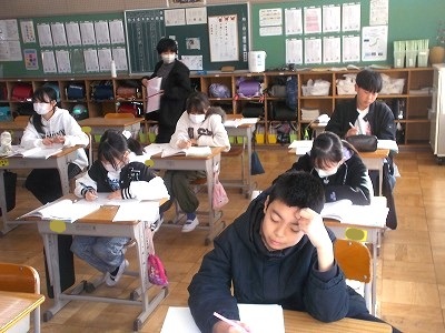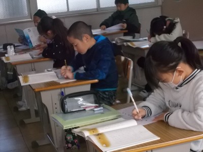 6年生は算数で、復習問題を解いていました。中学校に進学するまでに、小学校で学習したことをしっかりと身につけておきましょう。