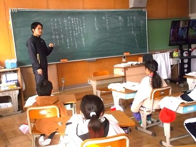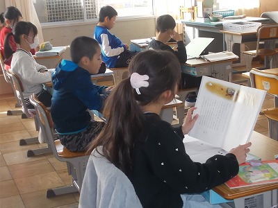 2年生は国語「見たこと 感じたこと」の学習です。詩を作るときに、どんなことを書いたらよいのか、どんな風に書いたらいいのかを、みんなで確認しました。